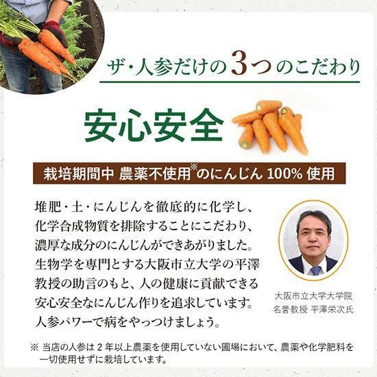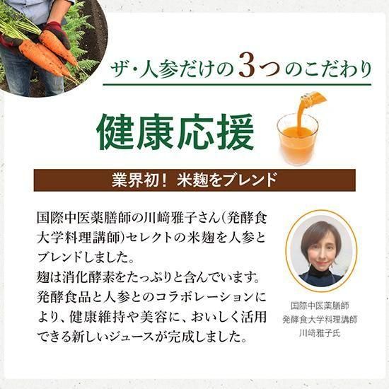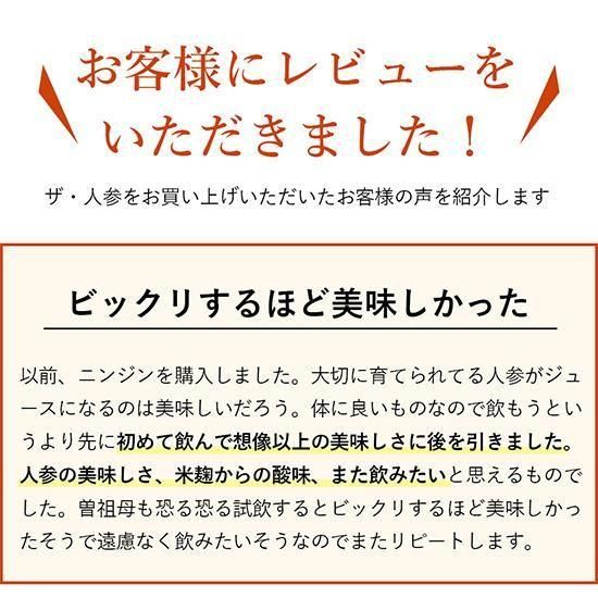 • 人参の繊維が沈殿していますので、よく振ってからお召し上がりください。